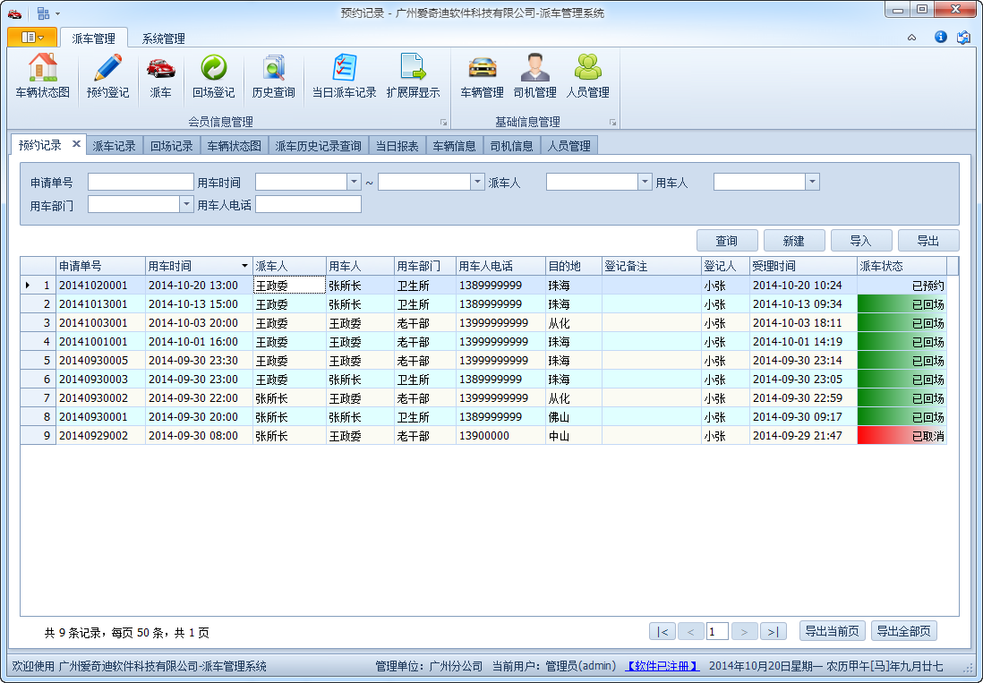 預(yù)約、派車(chē)、回場(chǎng)過(guò)程管理